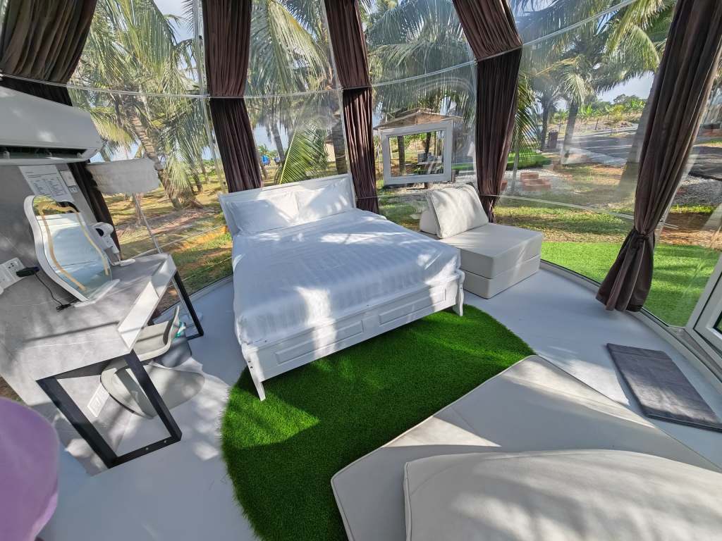 For instance, our transparent domes required sourcing specialised materials from China. Installation was difficult because these materials weren’t commonly used locally, and we needed to ensure the construction didn’t harm the coconut trees.