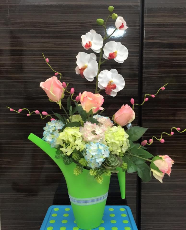 One of my most memorable projects was before COVID, when I created an arrangement for Ms Liu, the daughter of the late Liu Kang, Singapore’s renowned artist. Her niece wanted to gift something distinctive for her birthday, so I designed a floral piece using a watering can as the base — an artistic, abstract creation rather than a standard bouquet.